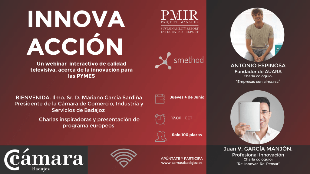 Tengo el placer de hacerte llegar la invitación al webinar INNOVA ACCIÓN promovido por la Cámara de Badajoz, y en le que tengo el placer de participar con la conferencia ”Re-Innovar Re-Pensar”