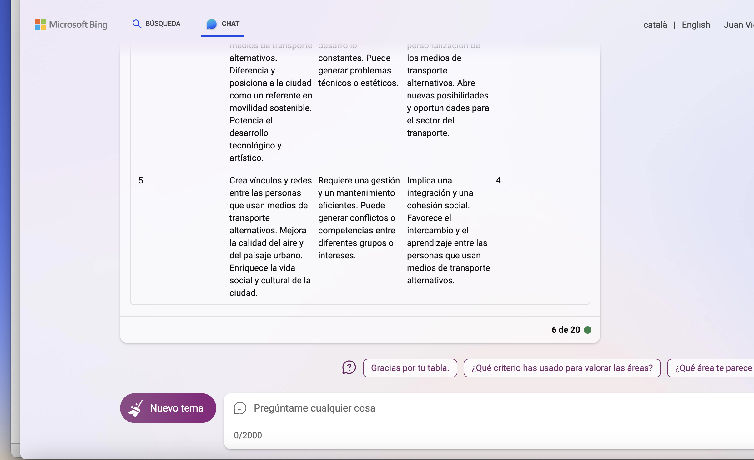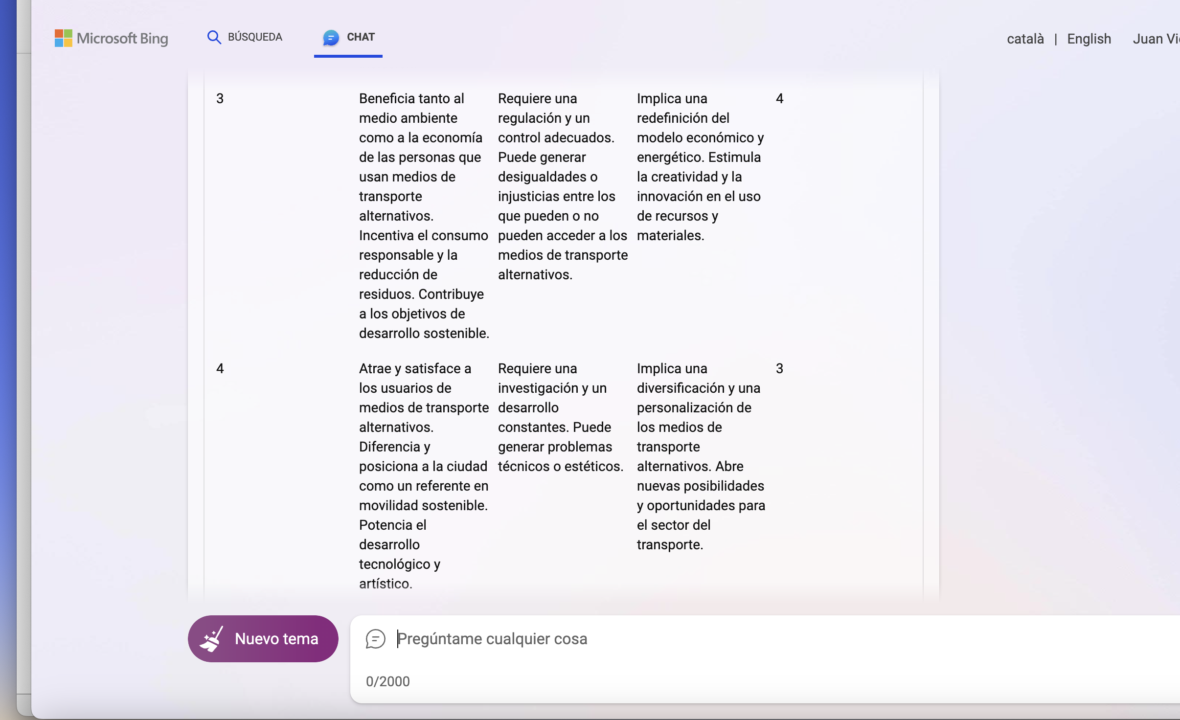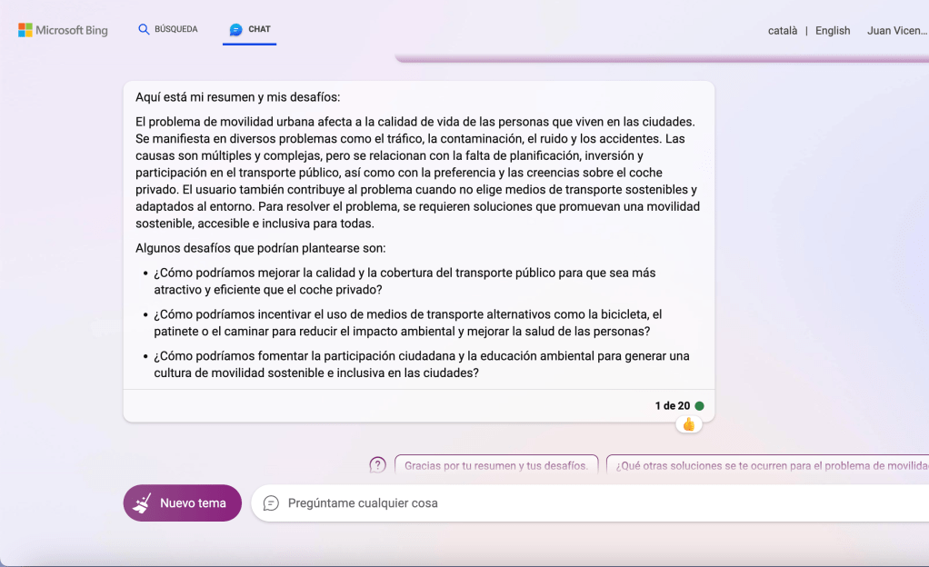 Bing nos hace una devolución a la información que hemos planteado. Puedes comprobar que hace un resumen muy bueno del problema y nos lanza los desafíos solicitados en el formato que hemos pedido. Si quieres saber más sobre este tipo de preguntas – desafíos y su valor en innovación, puedes saber más aquí How Might I?