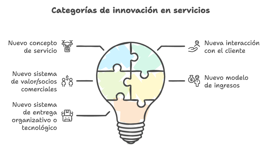 Según Den Hertog et al. (2010), una innovación de servicio se define como una nueva experiencia o solución de servicio que puede incluir una o más de las siguientes dimensiones: