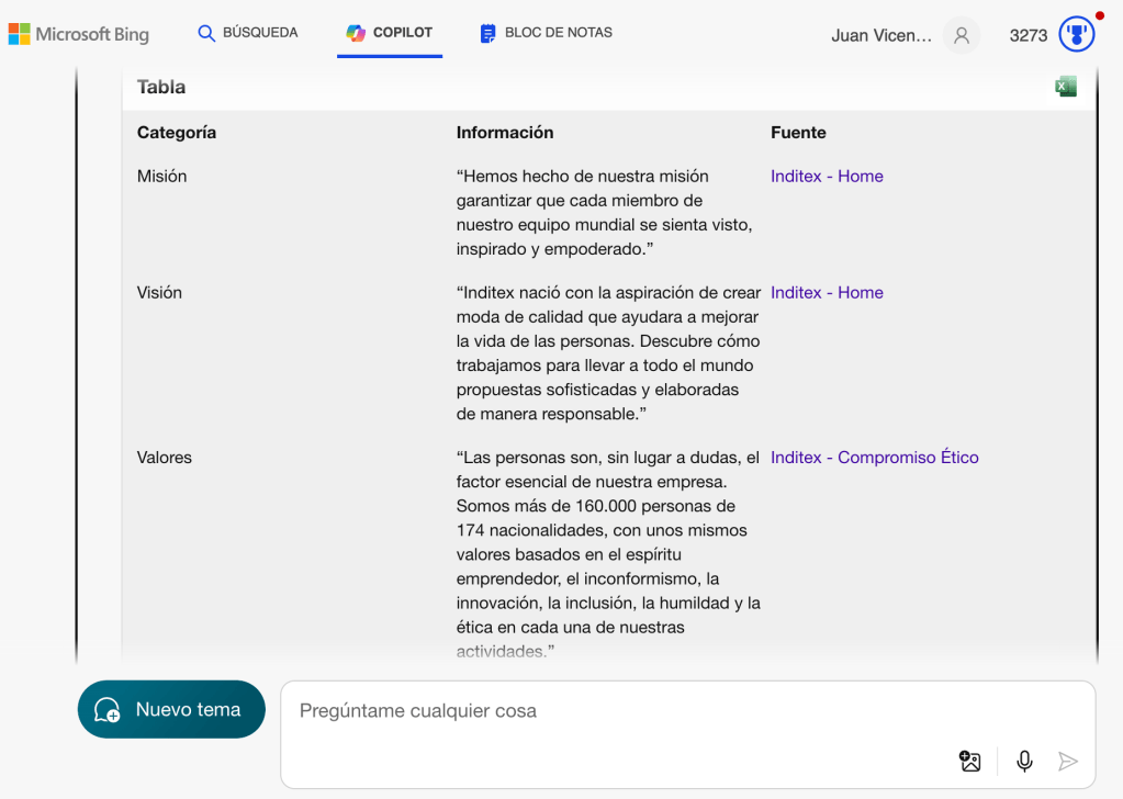 Para este análisis, hemos utilizado la IA de Copilot. Te dejo aquí algunos de los resultados de ejemplos con compañías del Ibex35 (Inditex, Logista, Repsol, Endesa y Aena)
