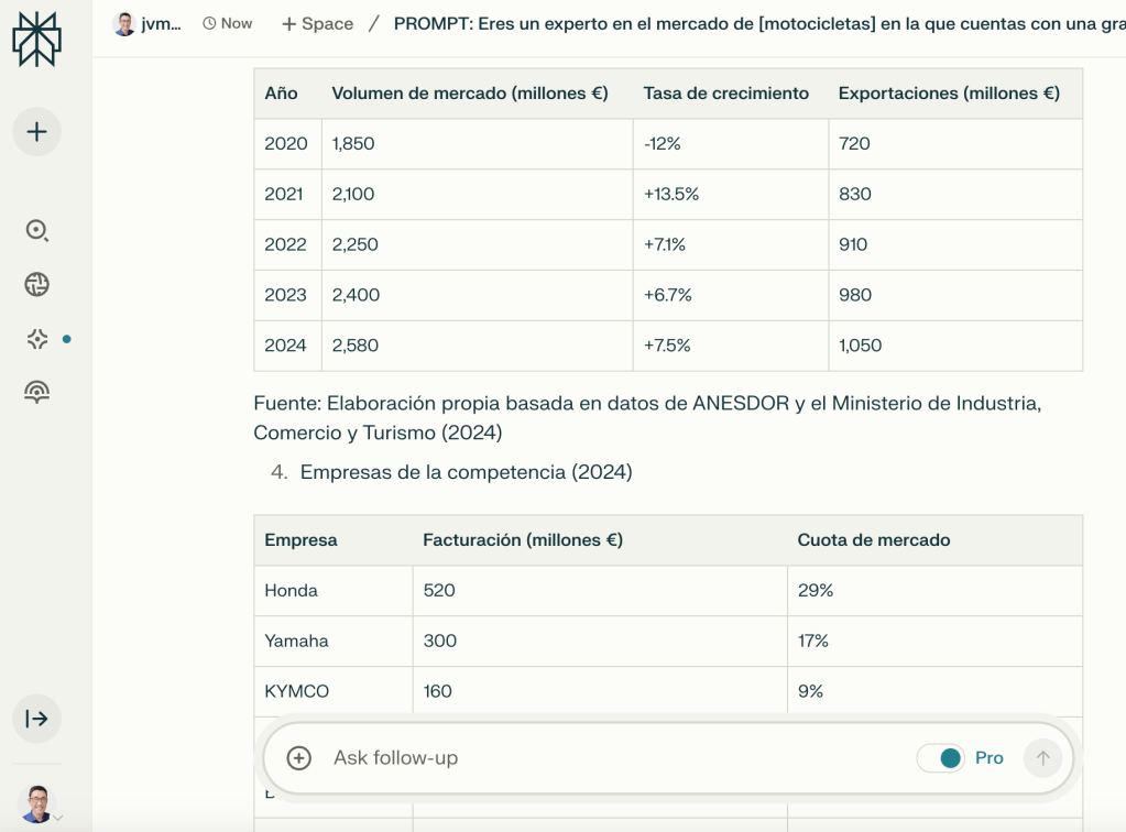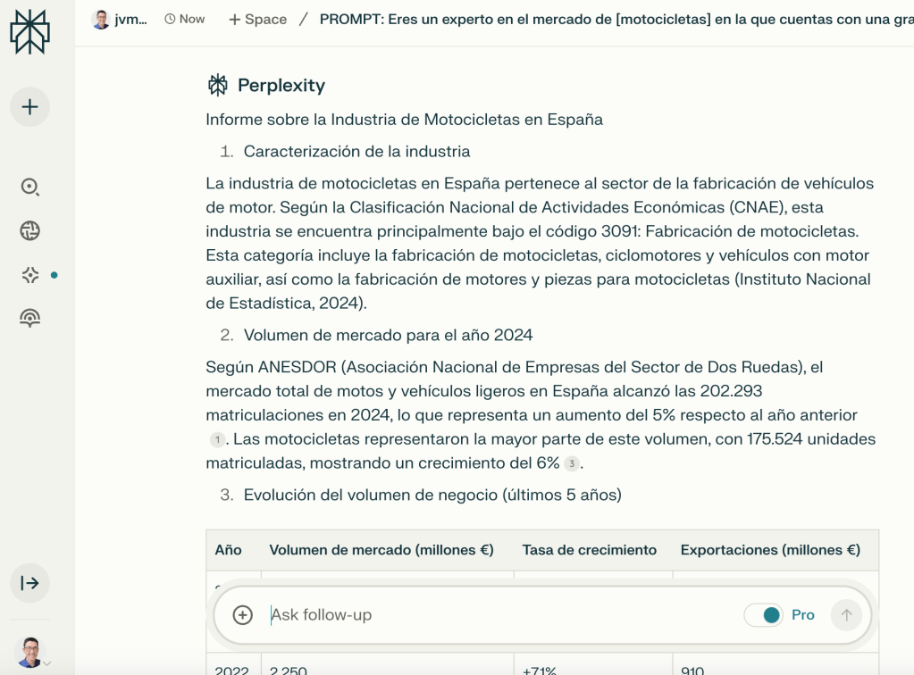 Veamos ahora el análisis que hace Perplexity con una búsqueda pro: