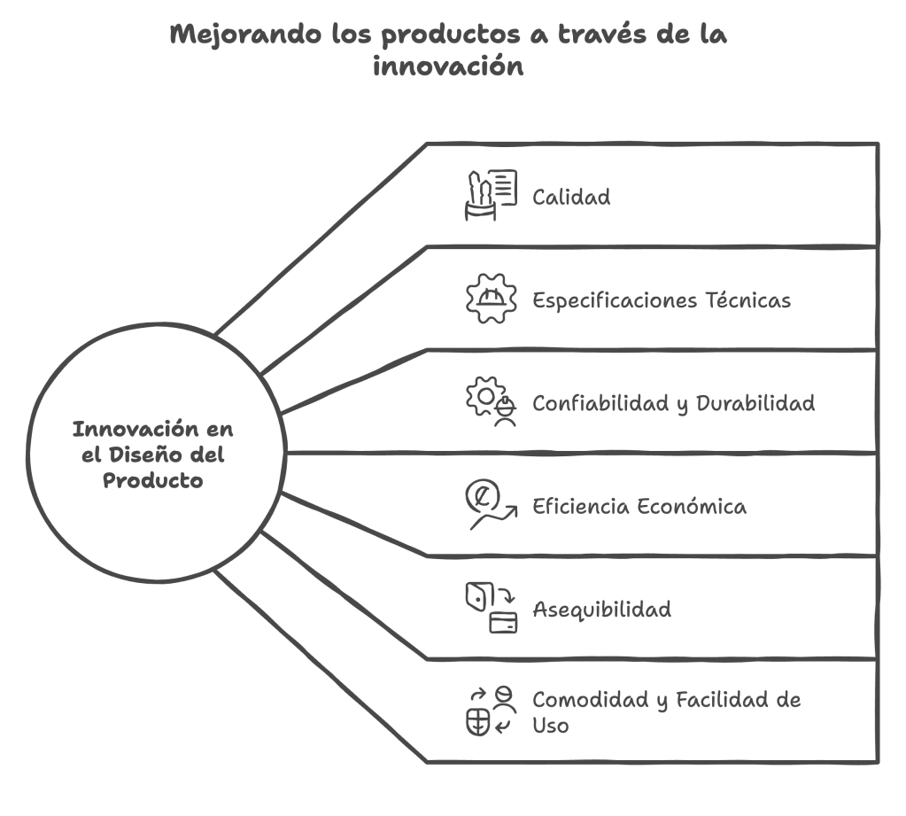 | Mejoras en funciones y utilidad | El producto puede innovar a través de la incorporación de nuevas funciones, la optimización de las existentes o la adaptación a nuevas necesidades del usuario. |