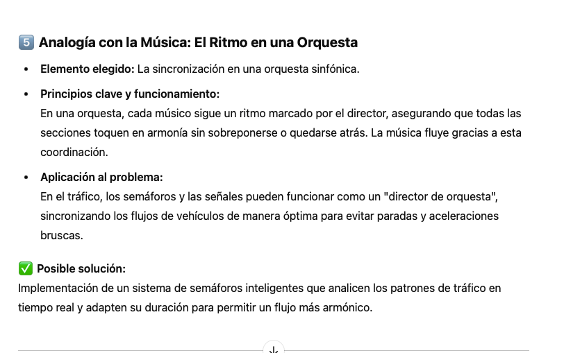 Aquí te dejo los resultados que hemos obtenido con ChatGPT el problema de los «atascos en el centro de las ciudades» y los campos analógicos que aparecen en el ejemplo. Pincha en la imagen y descubre las ideas: